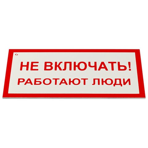 Знак электробезопасности "Не включать! Работают люди" изготовлен в соответствии c ГОСТ, отраслевыми нормами, правилами и инструкциями. Знак электробезопасности формата 100х200 мм изготовлен на пластиковой основе толщиной 2 мм.