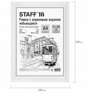 Рамка STAFF "Carven", 30х21 см, акриловый экран, мдф, белый
