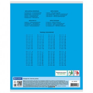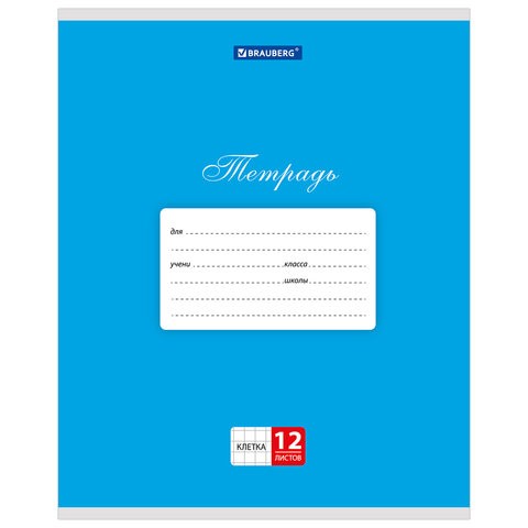 Тетрадь BRAUBERG КЛАССИКА , 12 листов, клетка, скрепка, синяя