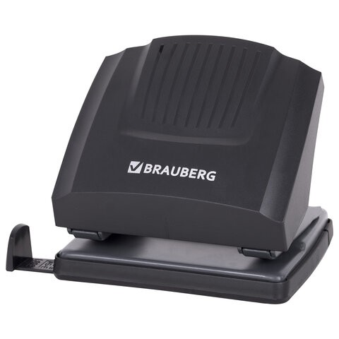 Дырокол с линейкой BRAUBERG "SUPER", на 30 листов, черный