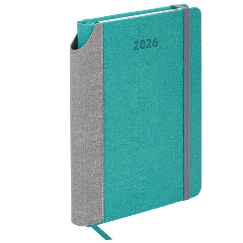 Описание Модель датированного ежедневника BRAUBERG "Mosaic" представляет собой новый взгляд на дизайн деловых аксессуаров. Гармоничное сочетание цветов добавит яркости рабочим будням и идеально подойдет для создания современного образа. Внутренний блок включает 168 листов белой бумаги плотностью 70 г/м2. Каждая страничка имеет перфорированный угол. Благодаря стандартному формату А5 (138х213 мм) ежедневник удобно использовать как в офисе, так и на выездных деловых встречах. Жесткая книжная обложка стилизована под искусственную кожу с текстурой льна, фиксируется резинкой, поэтому ежедневник не откроется в сумке или портфеле и страницы не помнутся. Материал обложки подходит для горячего тиснения. Для удобства пользования ежедневник снабжен карманом для фиксации ручки. Дополнением является закладка-ляссе, с помощью которой при необходимости можно быстро открыть ежедневник на нужной странице. Помимо прочего, ежедневник снабжен обширным справочным материалом. Выполнен в стильном сочетании зеленого и серого цветов