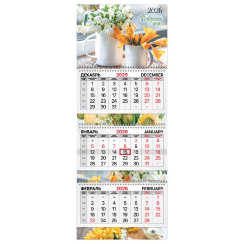 Календарь квартальный 2026 BRAUBERG EXTRA, "Весенние цветы", 3 блока, 295х760 мм