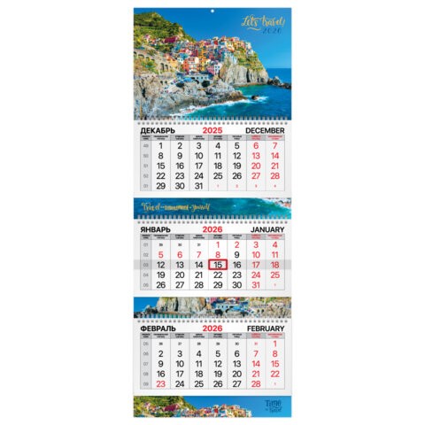 Квартальный календарь BRAUBERG EXTRA «Бухта» на 2026 год предназначен для стратегического и оперативного планирования деловой деятельности. Конструкция календаря включает три независимых блока, обеспечивающих одновременный обзор календарных сеток за предыдущий, текущий и последующий месяцы, что способствует эффективному распределению рабочих задач. Для оперативного выделения текущей даты предусмотрен курсор-бегунок. Продукт отличается высоким качеством исполнения: календарные блоки отпечатаны на мелованной бумаге плотностью 80 г/м², а устойчивая подложка изготовлена из мелованного картона плотностью 250 г/м². Календарь выполнен в вертикальном формате размером 29,5 × 76 см. Поставка осуществляется в индивидуальной упаковке (полибег) с европодвесом. Для обеспечения сохранности при транспортировке используется дополнительная защита в виде прокладки из гофрокартона.