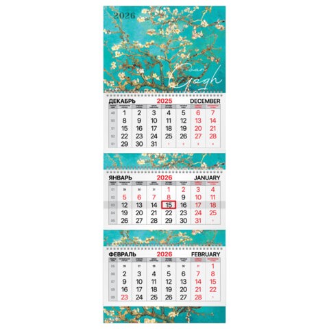 Календарь квартальный 2026 BRAUBERG EXTRA, "Миндаль", 3 блока, 295х760 мм
