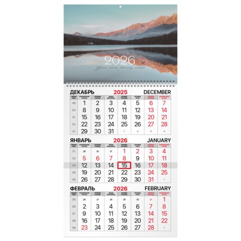 Календарь квартальный 2026 BRAUBERG, "Горное озеро", 1 блок, 295х600 мм