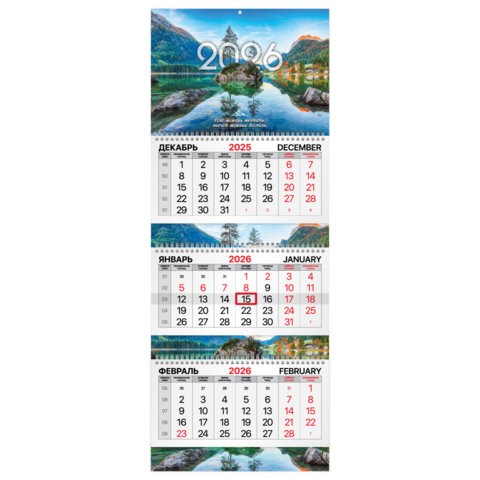 Календарь квартальный 2026 BRAUBERG EXTRA, "Горное озеро", 3 блока, 295х760 мм