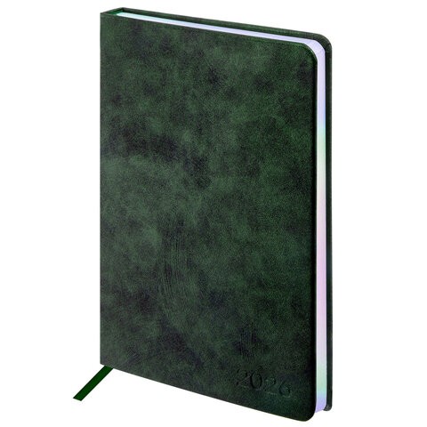 Ежедневник 2026 BRAUBERG "Ice", А5, 168 листов, под кожу, темно-зеленый