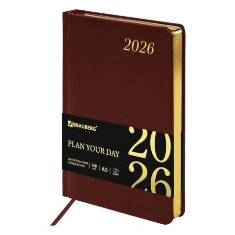 Ежедневник 2026 BRAUBERG "Iguana", А5, 168 листов, под кожу, коричневый