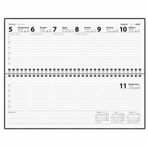 Планинг STAFF представляет собой функциональный инструмент для еженедельного планирования с возможностью выбора горизонтальной или вертикальной ориентации. Компактный формат 285×112 мм с расположением всех дней недели на одном развороте обеспечивает удобный обзор предстоящих задач. Конструкция включает внутренний блок объемом 64 листа из офсетной бумаги плотностью 65 г/м², дополненный прочной обложкой из мелованного картона. Надежное скрепление евроспиралью обеспечивает долговечность эксплуатации при интенсивном использовании. Планинг оптимален для организации рабочего процесса в различных сферах деятельности, сочетая практичность формата с эффективной системой визуализации недельных планов.