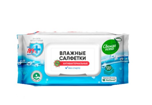 Салфетки влажные Свежая нота, антибактериальные, комплект 120 штук, крышка-клапан