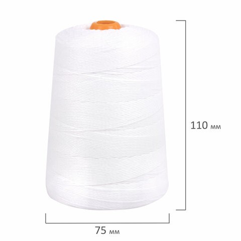 Лавсановая нить BRAUBERG ORIGINAL применяется для прошивки и брошюровки документов в банках и офисах. Подходит для всех типов ручных мешкозашивочных машинок. Нить диаметром 1,5 мм, скрученная из четырех высокопрочных полиэфирных нитей, намотана на конусную пластиковую бобину. Изготовлена из полиэфирного (лавсанового) волокна белого цвета. Мало подвержена воздействию ультрафиолетовых лучей. Не боится холода и сырости. Универсальная, имеет широкий спектр применения: от прошивки документов до пошива упаковочной тары и различных изделий. Подходит для ручных и стационарных швейных машин. Вес бобины с нитью – в среднем 0,240 кг. Длина намотки – 500 м. Разрывная нагрузка – 10 кгс. Линейная плотность (ЛШ) – 460 текс. Упакована в термоусадочную пленку.
