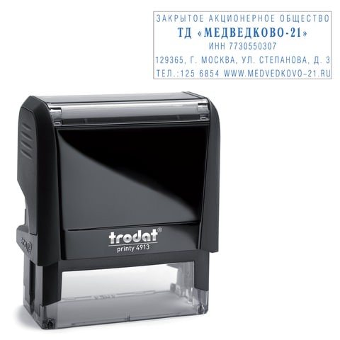 Оснастка для штампа, оттиск 58х22 мм, синий, TRODAT 4913 P4, подушка в комплекте, корпус черный, 52887
